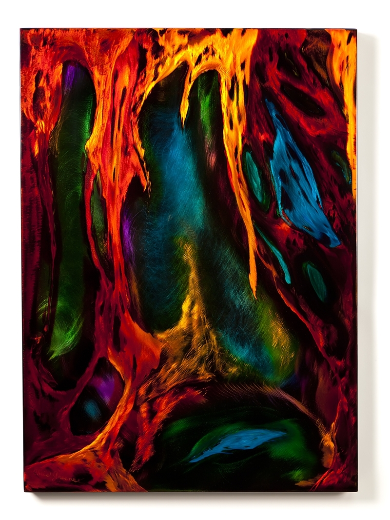 Multiple layers of automotive candy paint and polyurethane clear coat bring out dramatic depth within the painting to achieve a three dimensional effect.