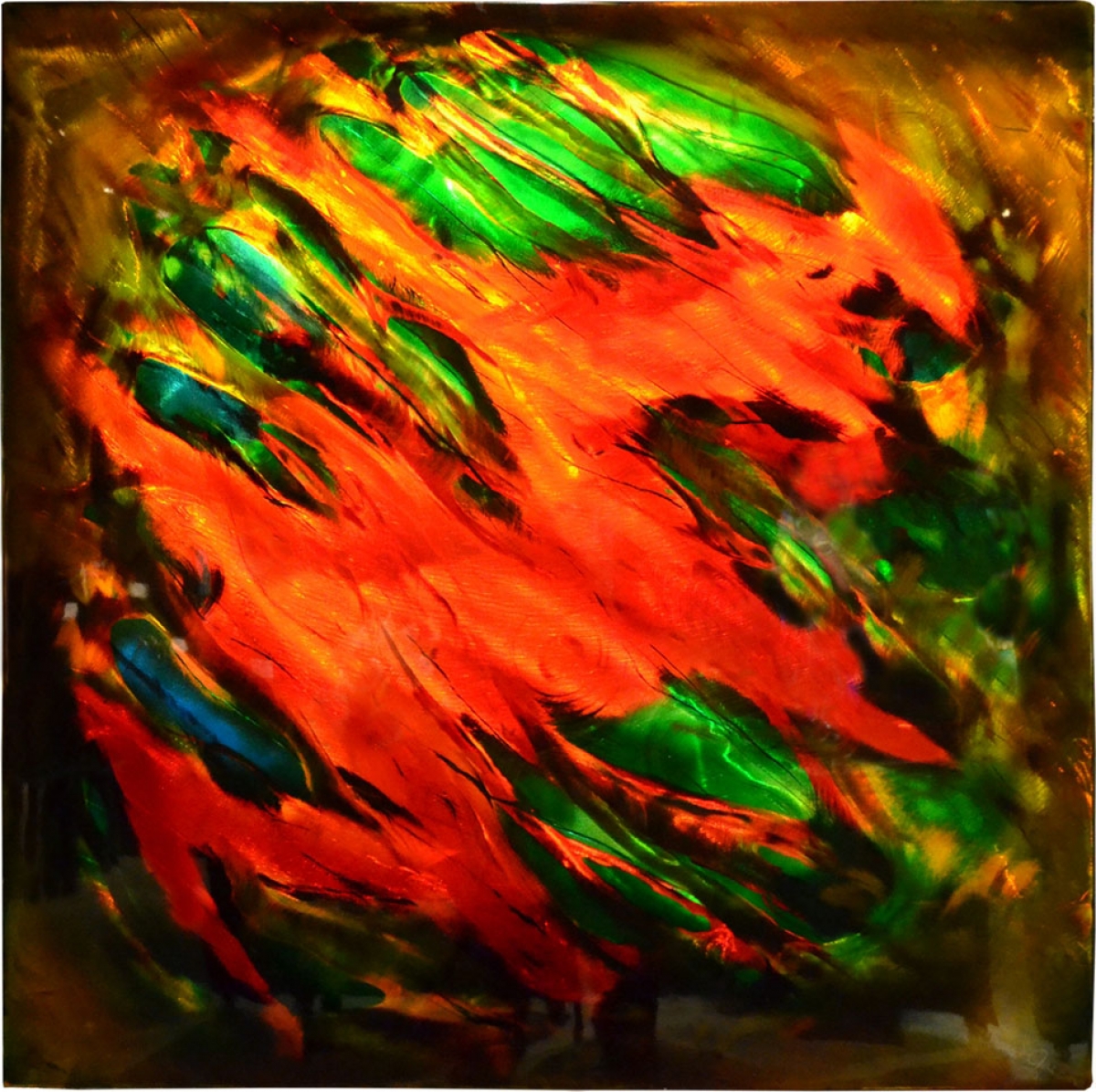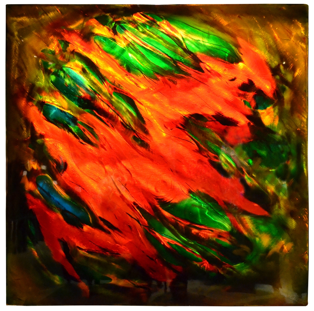 Multiple layers of automotive candy paint and polyurethane clear coat bring out dramatic depth within the painting to achieve a three dimensional effect.