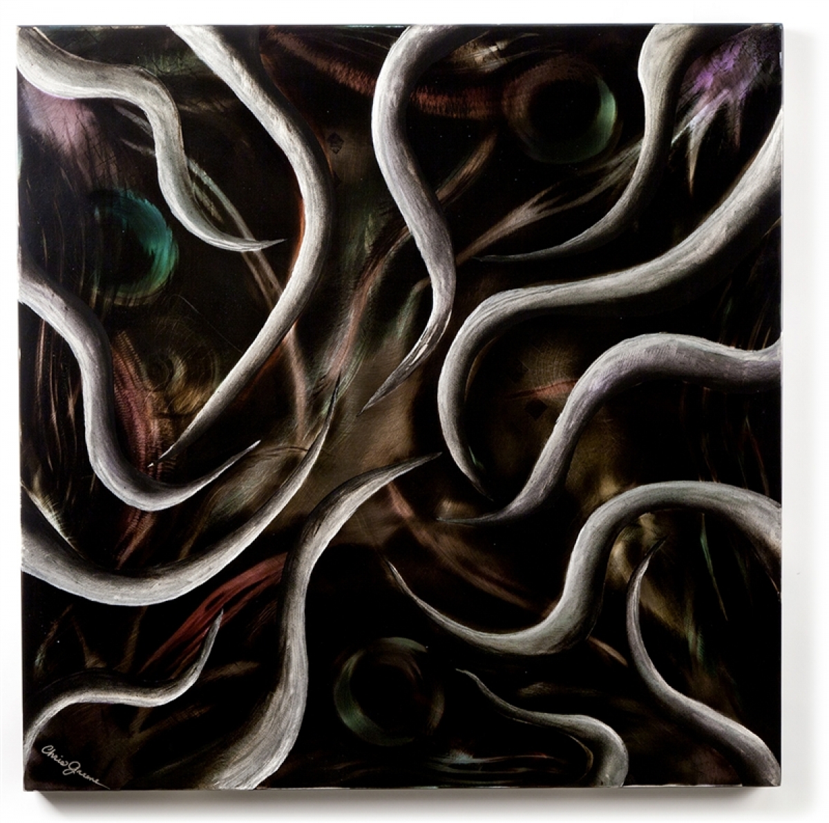 Multiple layers of automotive candy paint and polyurethane clear coat bring out dramatic depth within the painting to achieve a three dimensional effect.