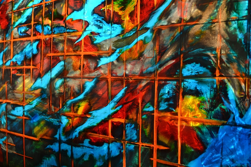 Multiple layers of automotive candy paint and polyurethane clear coat bring out dramatic depth within the painting to achieve a three dimensional effect.