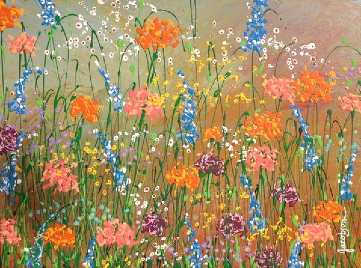 “As a child growing up on a family farm in rural Texas, I developed a deep and profound love for nature and, especially, for wildflowers. That experience is still part of who I am today and is my inspiration. As an artist, I have chosen to express my soul through interpretive, colorful wildflower paintings that allow the viewer to be an integral part of the experience. By using a somewhat abstract technique, I invite the person looking at my artwork to delve deeper into themselves as well as the paintings, which creates an opportunity for the viewer to personalize the vision seen and emotions felt. I look to the future with the hope of encouraging the simple joy I see in wildflowers for generations to come. I have often been told that my paintings are ‘happy.’ If my art brings joy to someone’s heart and spirit, what more could I ask for?”