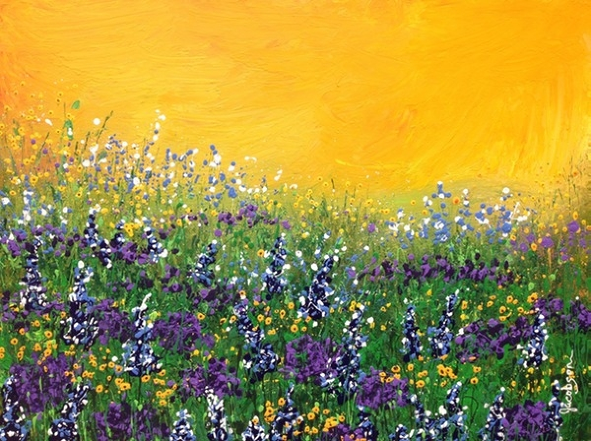 Wonderful wildflower meadows against bright yellow skies. Linda's interpretation of Texas wildflowers is so dramatic in its use of color that it may leave you breathless. The transition time between night and day lasts but a few minutes and is rich in contrasting hues of color that are visible to the human eye only during these brief moments.