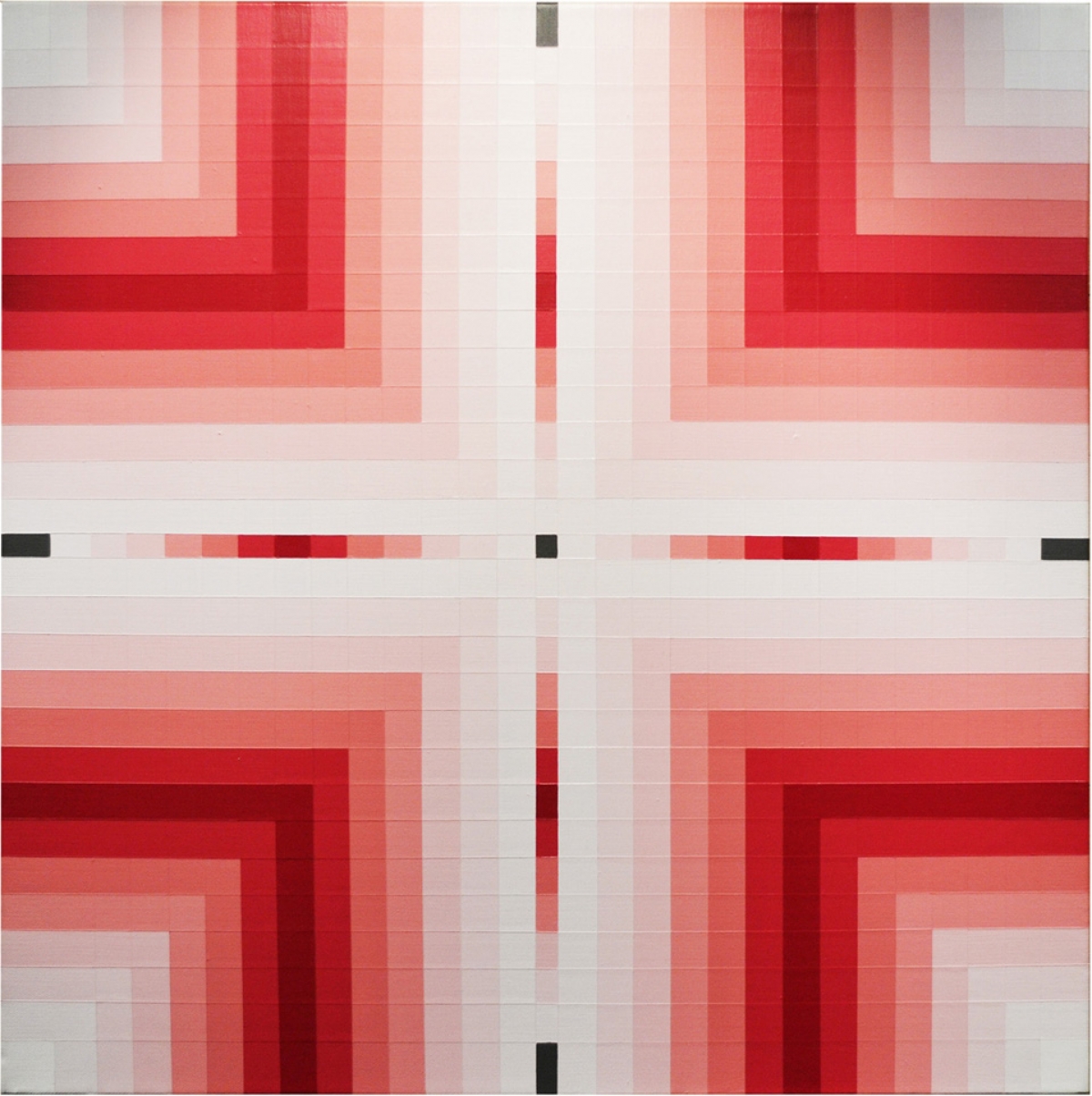 Stitch is comprised of both vertical and horizontal lines. The unique process of line placement and design of these pieces create naturally inherent depth on the canvas. The final result expresses the vision of colors woven across the canvas.