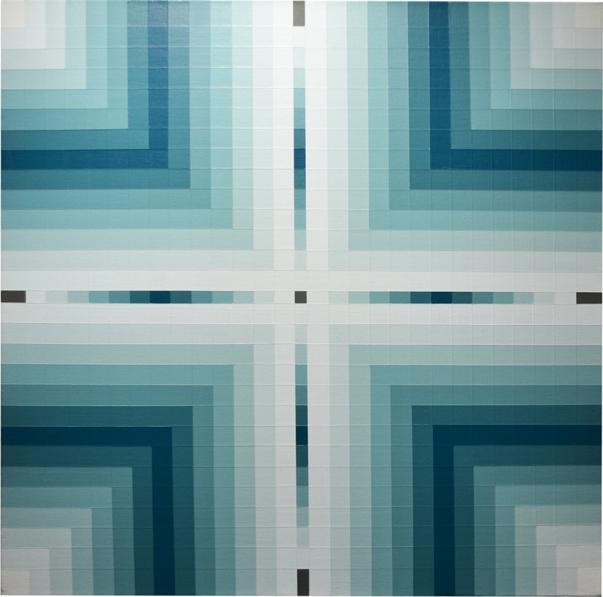 Stitch is comprised of both vertical and horizontal lines. The unique process of line placement and design of these pieces create naturally inherent depth on the canvas. The final result expresses the vision of colors woven across the canvas.