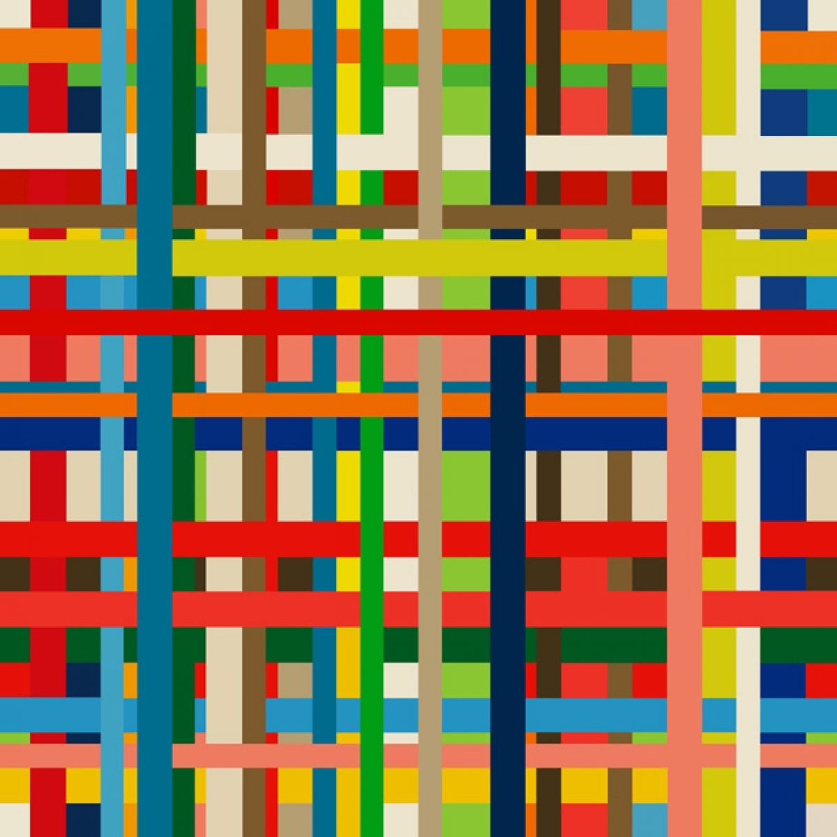 Stitch is comprised of both vertical and horizontal lines. The unique process of line placement and design of these pieces create naturally inherent depth on the canvas. The final result expresses the vision of colors woven across the canvas.
