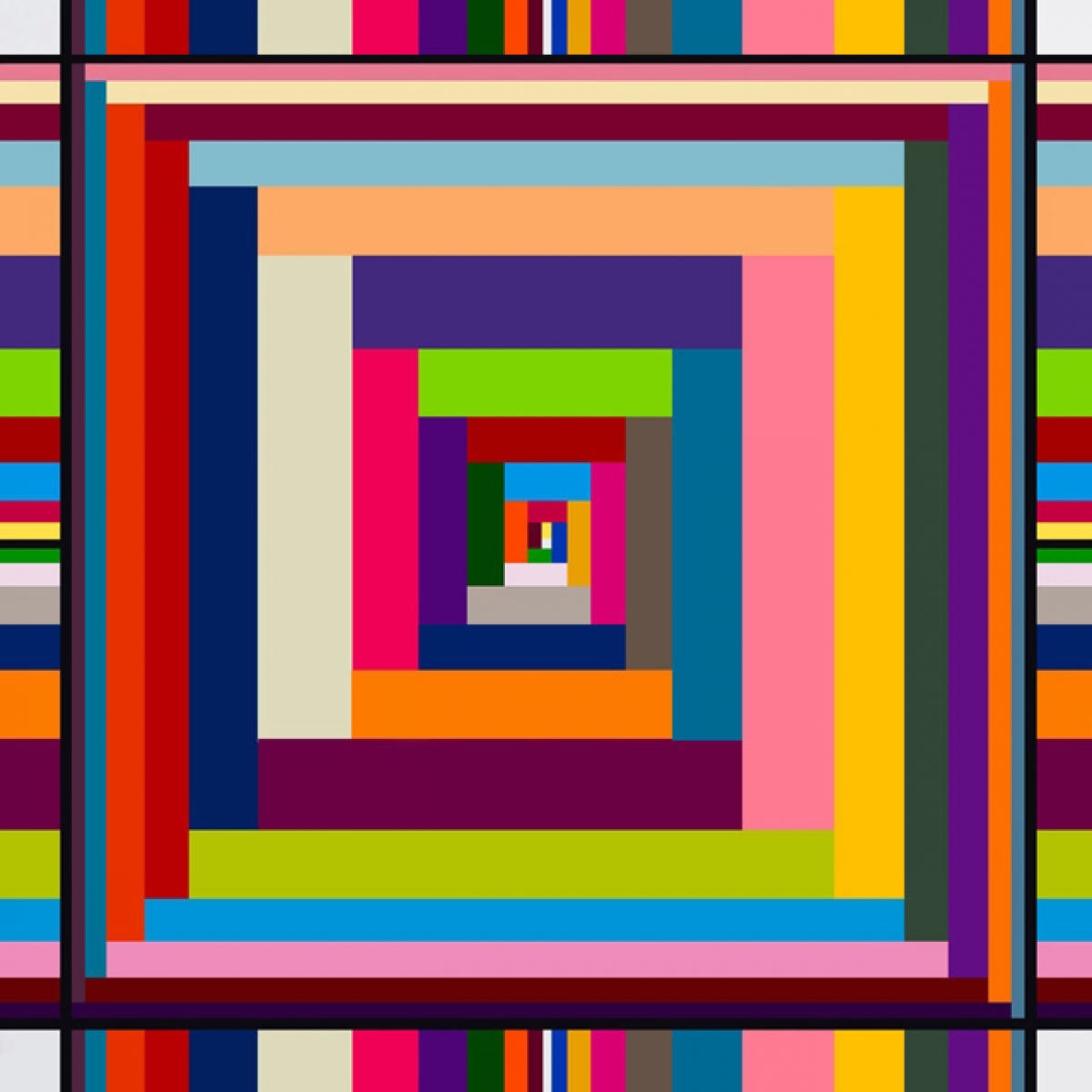 Stitch is comprised of both vertical and horizontal lines. The unique process of line placement and design of these pieces create naturally inherent depth on the canvas. The final result expresses the vision of colors woven across the canvas.