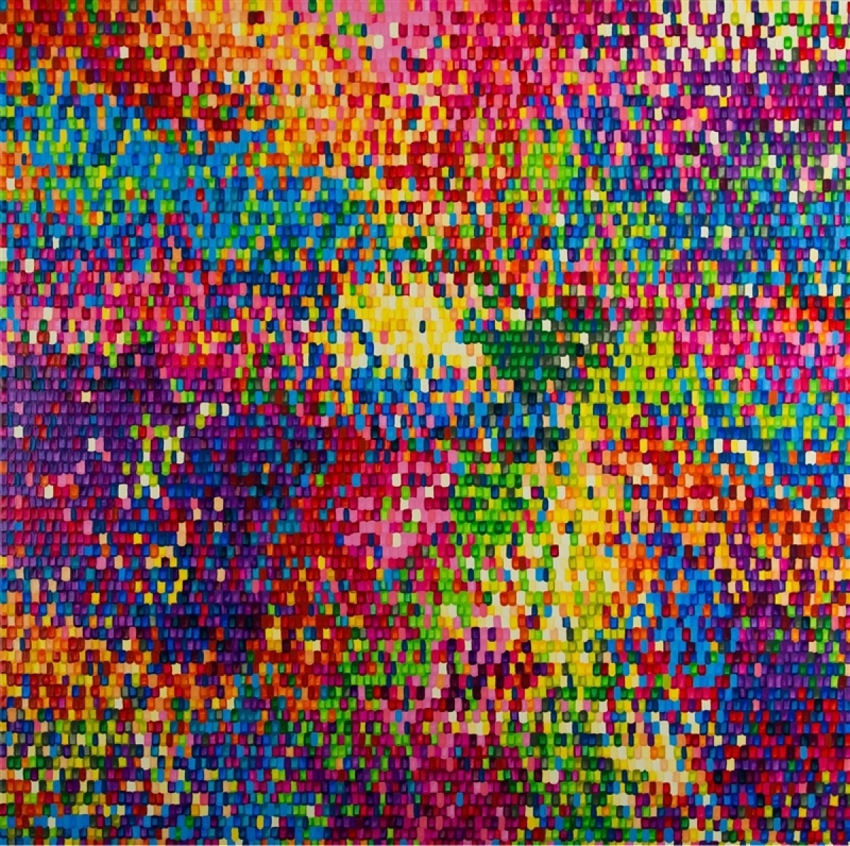 Micro Pixel is created by covering the entire canvas with 20,000 to 30,000 individual brush strokes or ‘pixels’. Each piece is unique based on the strategic composition of individual strokes. Most pieces use several thousand brush strokes while others use less to complete the vision.