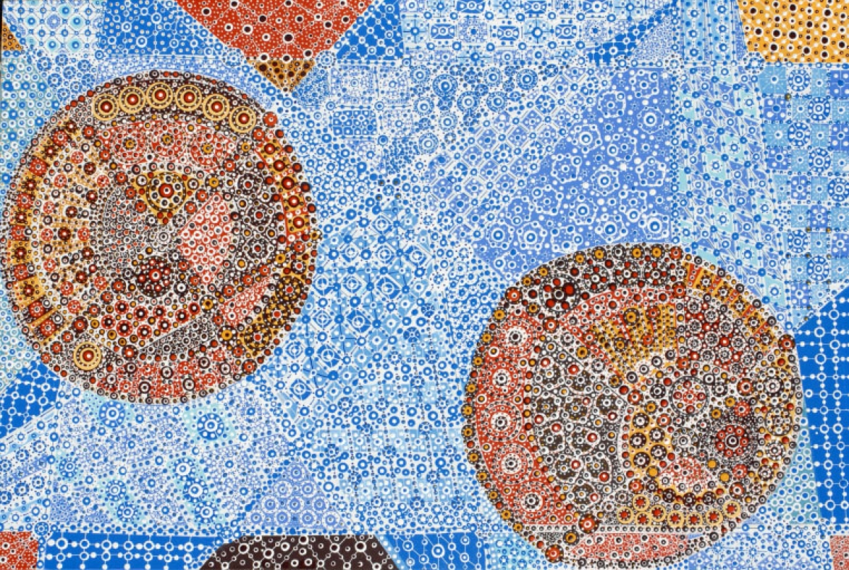 Sky Dance is a complex and detailed abstract painting exploring themes of connection, language and the instinctual creative drive that all humans possess.