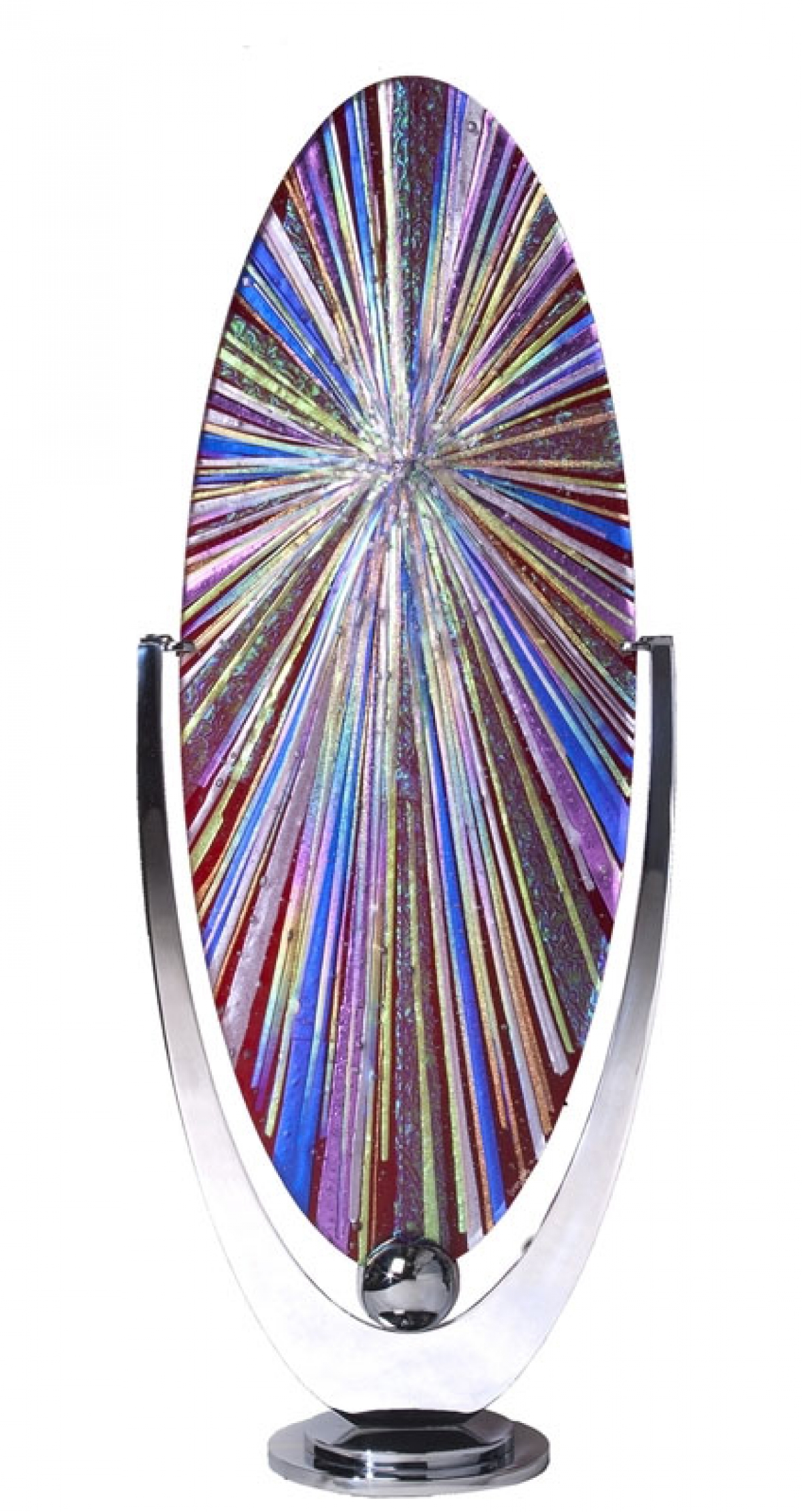 - Hand-blown hot glass fused with brilliant dichroic glass