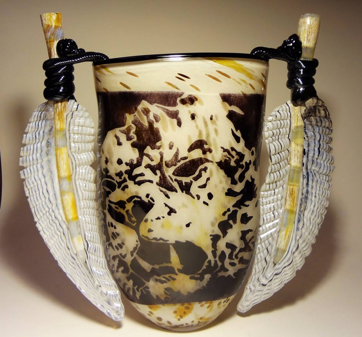 The roaring white lion flanked by two white speckled feathers evokes a sense of nobility and power.